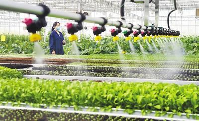 肃宁县一现代农业示范园的工人在遥控自动喷水设备为蔬菜浇水。河北日报通讯员 苑立伟摄