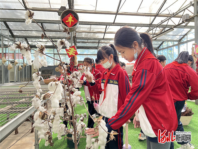 9月23日,在衡水市农业科学研究院耕读科普基地,学生们在观察棉花的生长。河北日报记者焦磊摄